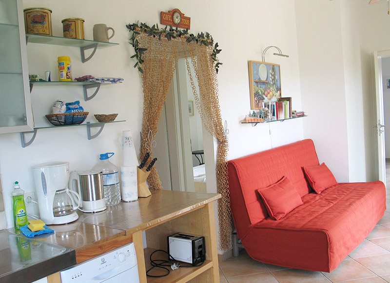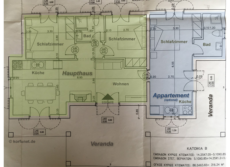 Die Kombination von Haupthaus und Appartement kann mit bis zu acht Personen belegt werden. In unmittelbarer Nähe liegt die Villa Ilios (drei Schlafzimmer, bis zu sechs Personen).