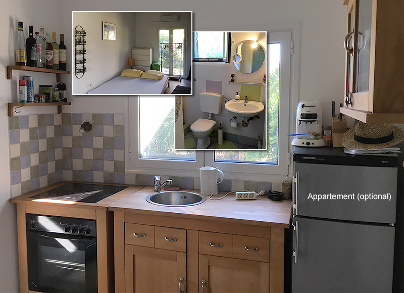 Das allein stehende Ferienhaus ist großzügig geschnitten und geschmackvoll eingerichtet. Im Haus ist ein Appartement mit Bad und Küchenzeile integriert (eigener Eingang und Terrasse, Zugang aber auch über das Haupthaus), das optional angemietet werden kann. Falls nur das Haupthaus gebucht wird bleibt das Appartement unbelegt.