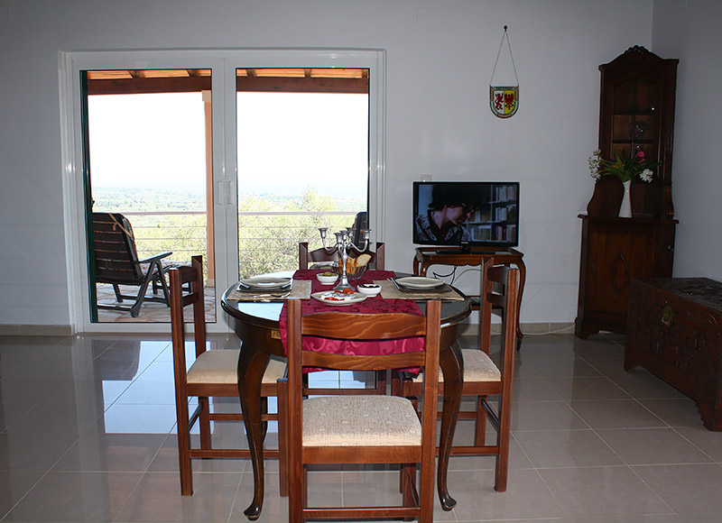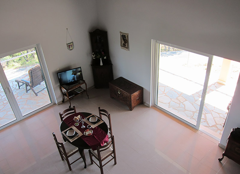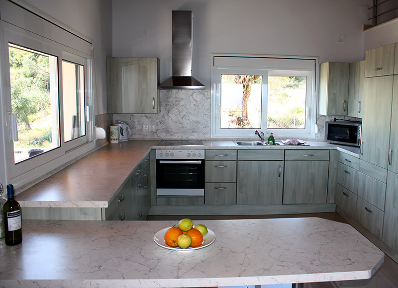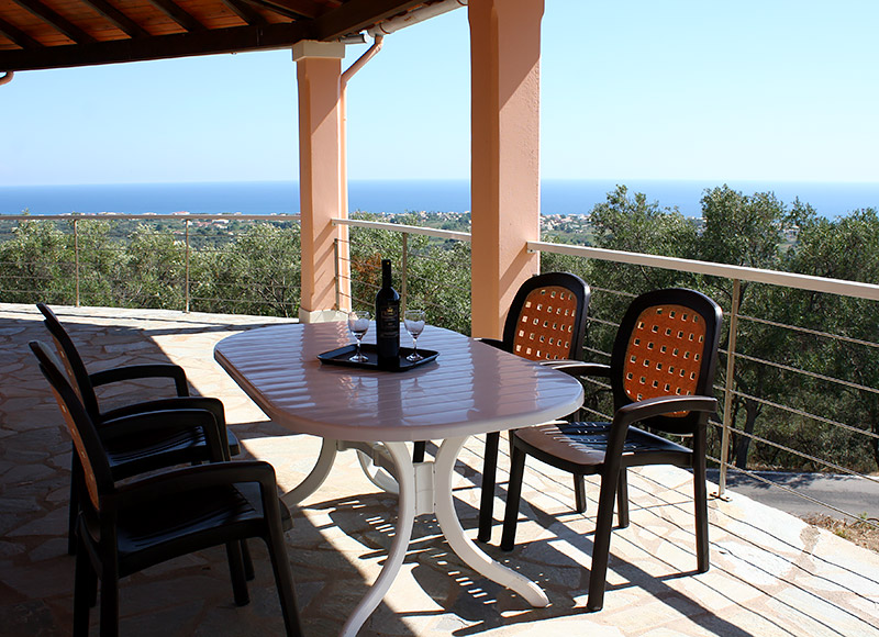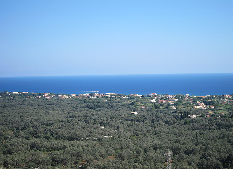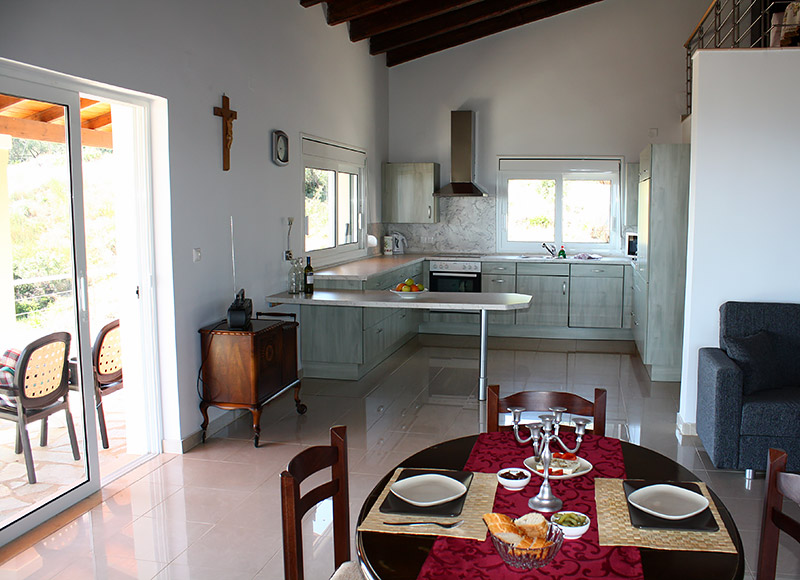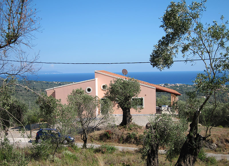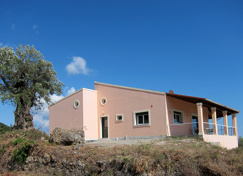 Das großzügige Haus liegt im Süden der Insel auf halbem Weg zwischen Agios Georgios, Argirades und dem traditionellen Bergdorf Hlomos. Hier haben Sie einen traumhaften Panoramablick über den See, das Meer und die Südinsel.