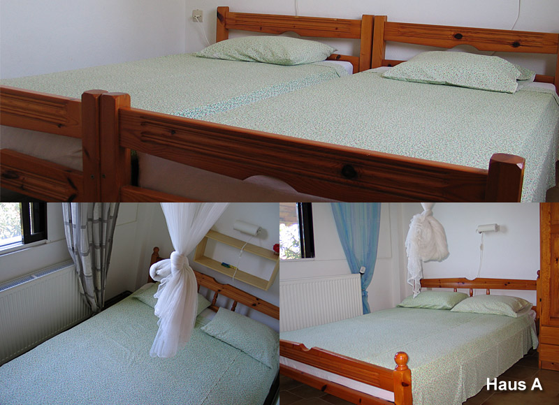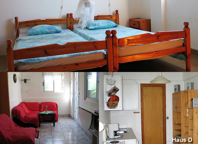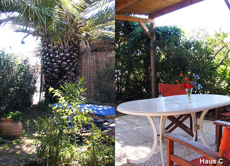 Die Bungalows wurden 1989 erbaut und sind hervorragend eingerichtet. Bungalow A und B (letzterer ist die ganze Saison vom Eigentümer belegt) sowie Bungalow C und D sind zusammenhängend. Jedes Haus verfügt jedoch über einen seperaten Eingang und Garten und die Veranden liegen in zwei verschiedenen Himmelsrichtungen.
