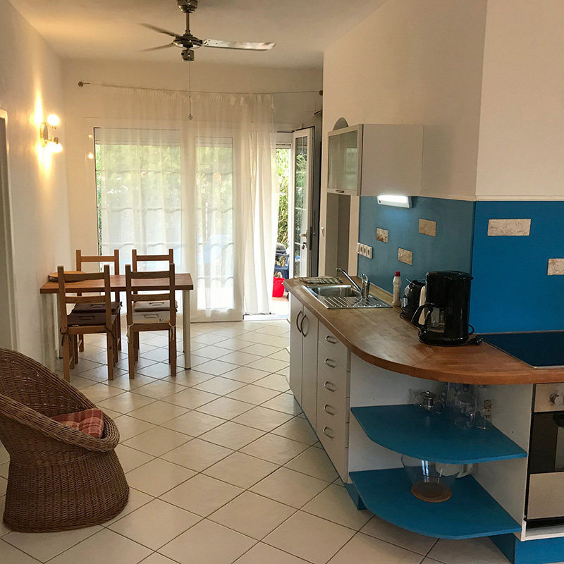 Die moderne Ferienwohnung gehört zu einer kleinen privaten Anlage mit insgesamt zwei Ferienwohnungen (Villa Leon/Villa Timo) für jeweils vier Personen und einem Appartement (Villa Mythos) für zwei bis maximal vier Personen. Bei Komplettbelegung ist der Zugang zum Atrium (zur Villa Mythos gehörend) für alle drei Parteien möglich.