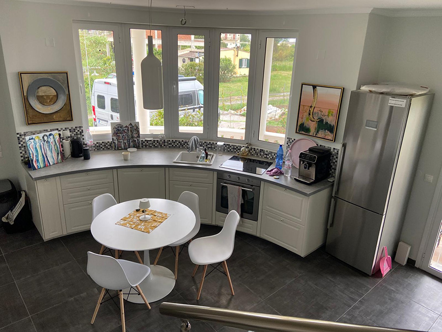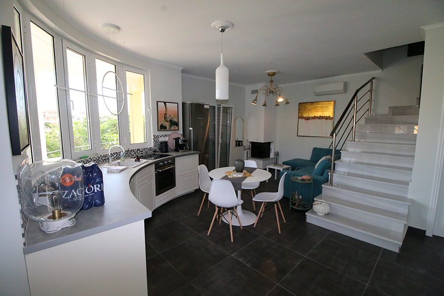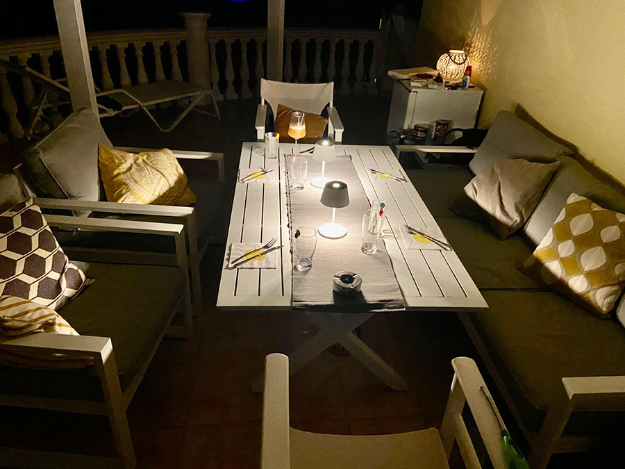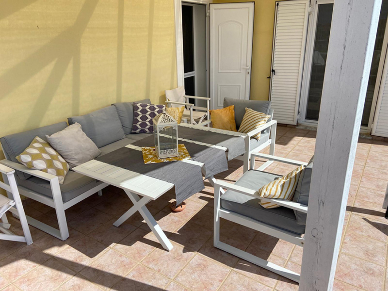 Das Haupthaus bietet ausreichend Platz für 4 Personen (plus Baby) auf zwei Ebenen mit zwei Schlafzimmern, Bad und Wohn-Essbereich. Mehrere Balkone im EG und OG und der Außenbereich laden zum Relaxen ein, ein Highlight ist die große Dachterrasse. Optional können Sie das abgetrennte Appartement zusätzlich anmieten (Schlafzimmer mit Duschbad/WC und weiterer kleiner Küche). Insgesamt (Haupthaus und Appartement) bietet das Haus ausreichend Platz für 6 Personen (plus Baby).